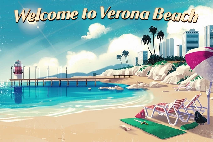 Postcard from Verona Beach. This postcard was part of a backer reward. |
